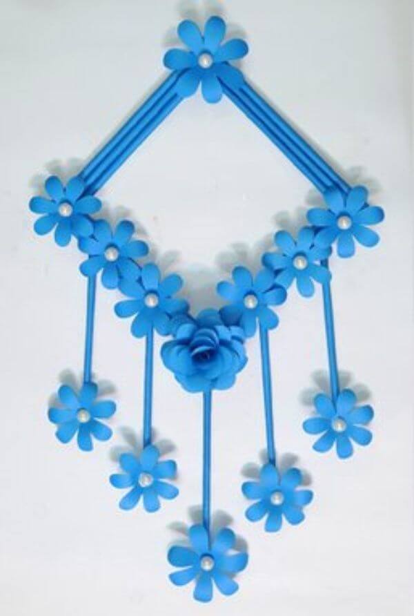 The vibrant colors with a colorless white flower in the middle give it a cool contrasting effect that would go with any colored wall in any room! You can make this with just colorful sheets, glue, thread, and scissors. That’s it! For a fun twist, you can also add some stones and beads to make it more attractive.
