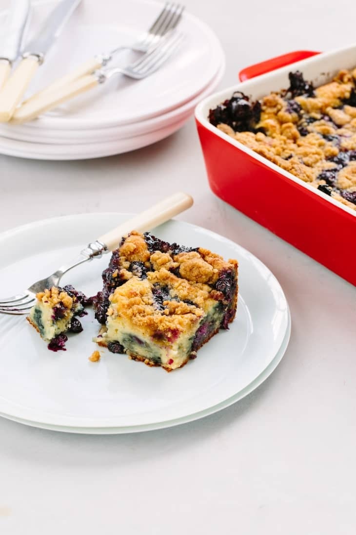 Searching for that perfect brunch casserole that everyone will go crazy for? Look no further, because this dish is a total crowd-pleaser. Fresh blueberries are speckled throughout a thick, fluffy buttermilk breading, and it’s all finished with a sweet cinnamon streusel on top. So good!