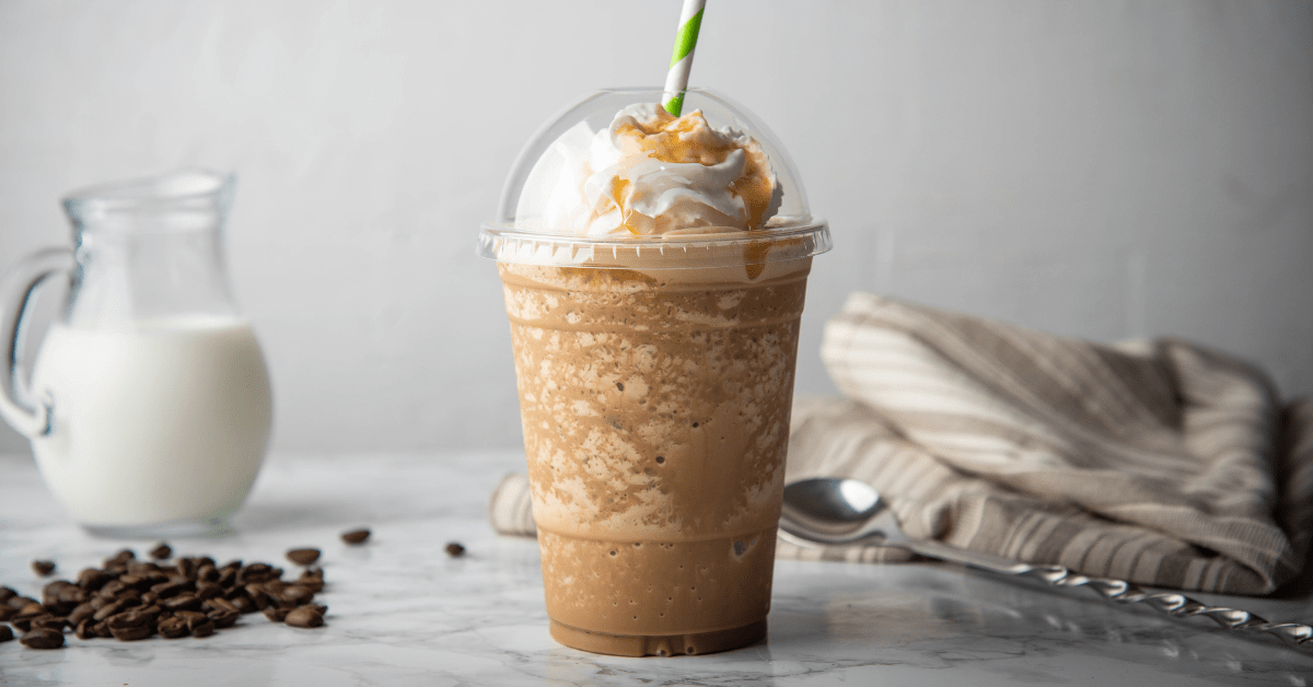Strong coffee gets blended with milk and caramel sauce, then it’s all topped off with whipped cream and even more caramel. Yum!!!
