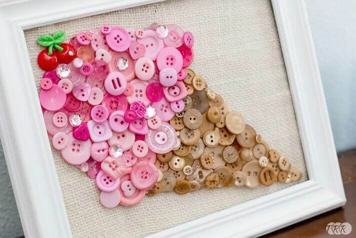 Here’s a sweet Valentine’s decoration made from heart-shaped button art. Just grab some red, pink, and white buttons for that festive feel.