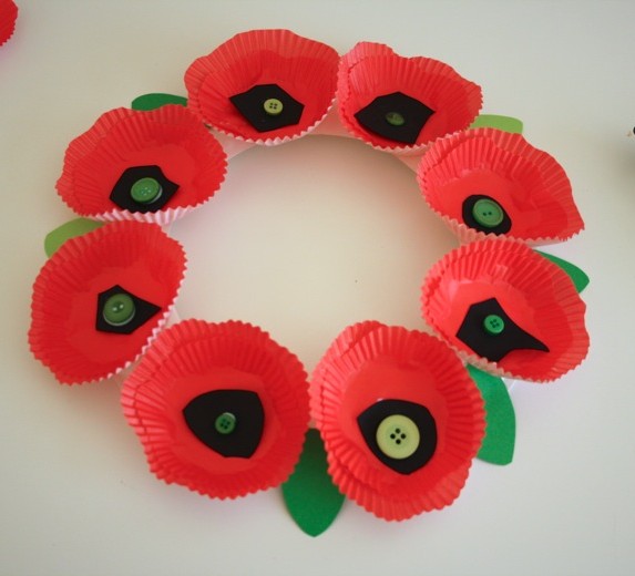Do you have some red cupcake liners in the pantry? Using them is another way of making a poppy wreath.